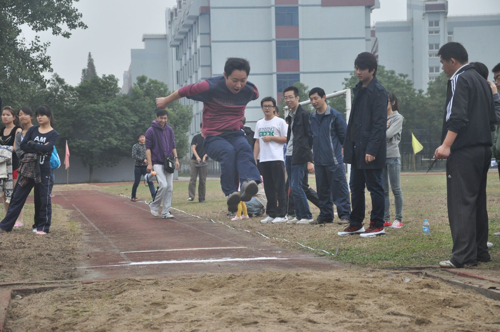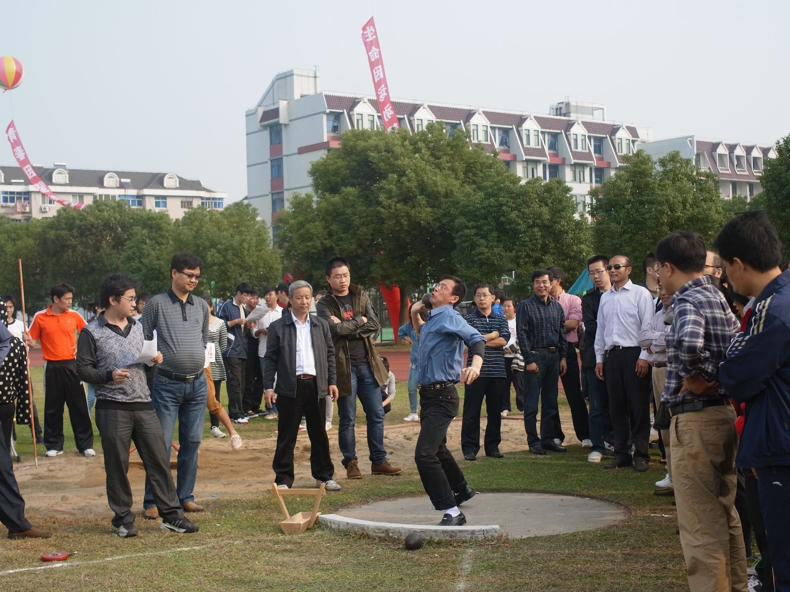 参加跳远,铅球比赛的每一位老师满信心的发挥自己的运动才能,展示着自己体育运动水平。