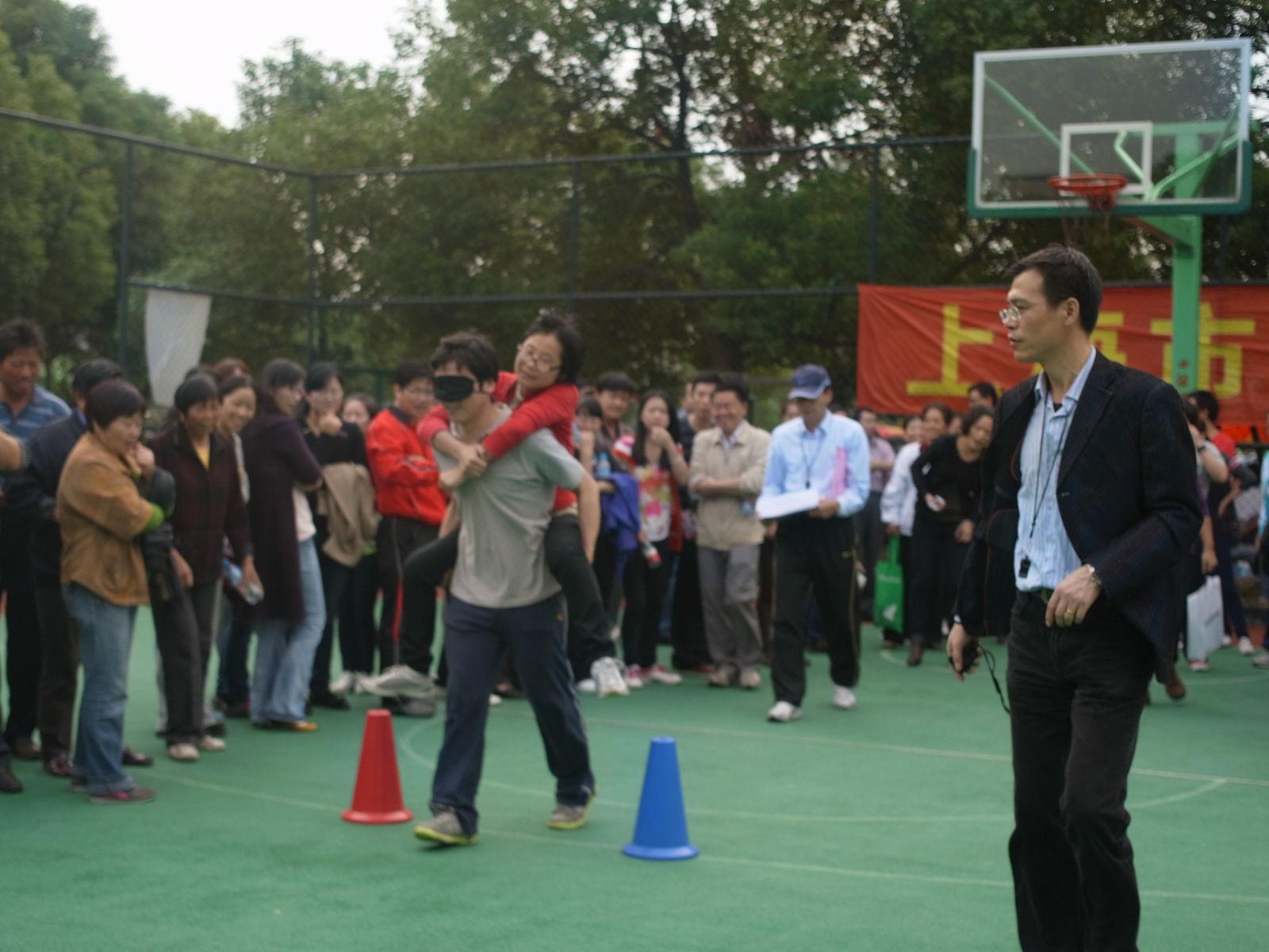 下午,教职工趣味项目更是充满乐趣,每队参加“勇往直前”趣味项比赛的同志们,密切配合,越过一个个障碍物,到达终点,享受挑战成功的喜悦。