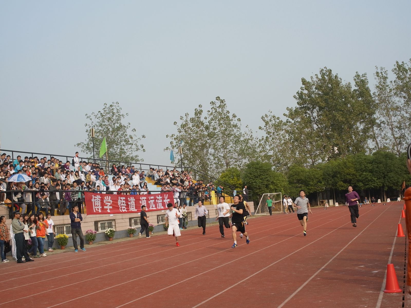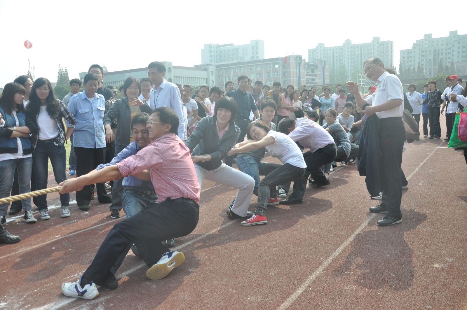 10月25-26日,2012年教职工运动会在学院体育场顺利举行,全院200多教职工参加的跑步、铅球、跳远,拔河等10多项比赛项目,参与人次达到200多人次。