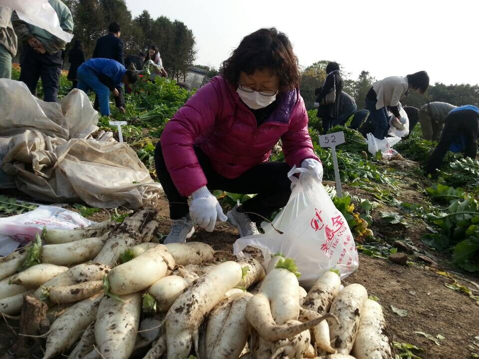 一个个躲藏在泥土下的大白萝卜勾起了广大教职员工的兴趣,大家争先恐后的比谁拔的萝卜大!形态各异的萝卜被连拖带拽的拔了出来,水灵灵的带着泥土的芬芳陈列在一条条垄道上。有经验的老师们分享着拔萝卜的经验,而年轻的教工们则亲身体验着拔萝卜的乐趣,想着晚上这萝卜怎么吃。