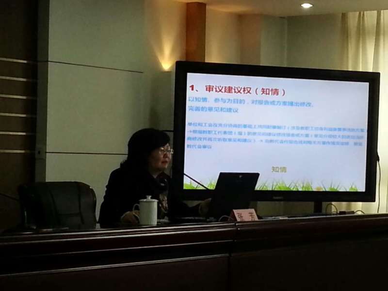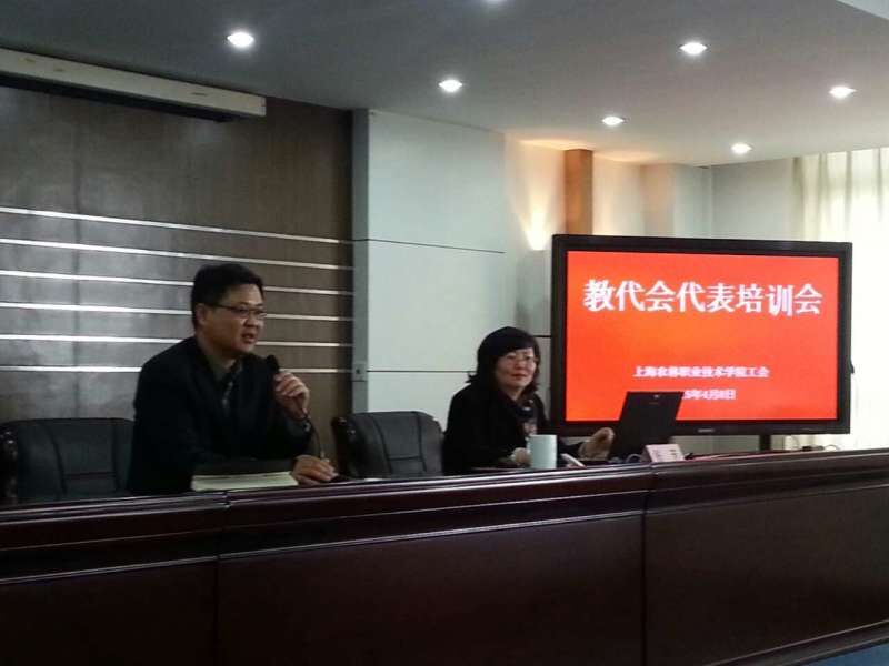 为更好的发挥教代会的作用,使教代会代表明晰代表的权利和义务,了解教代会提案工作的意义。4月8日下午3点在学院综合楼1001会议室,学院工会邀请了上海市教育工会基层工作部的张芳部长就教代会和代表等相关问题进行了详细的解答。工会主席高功辉同志携全体教代会代表以及工会委员和组长参加了本次培训会议。