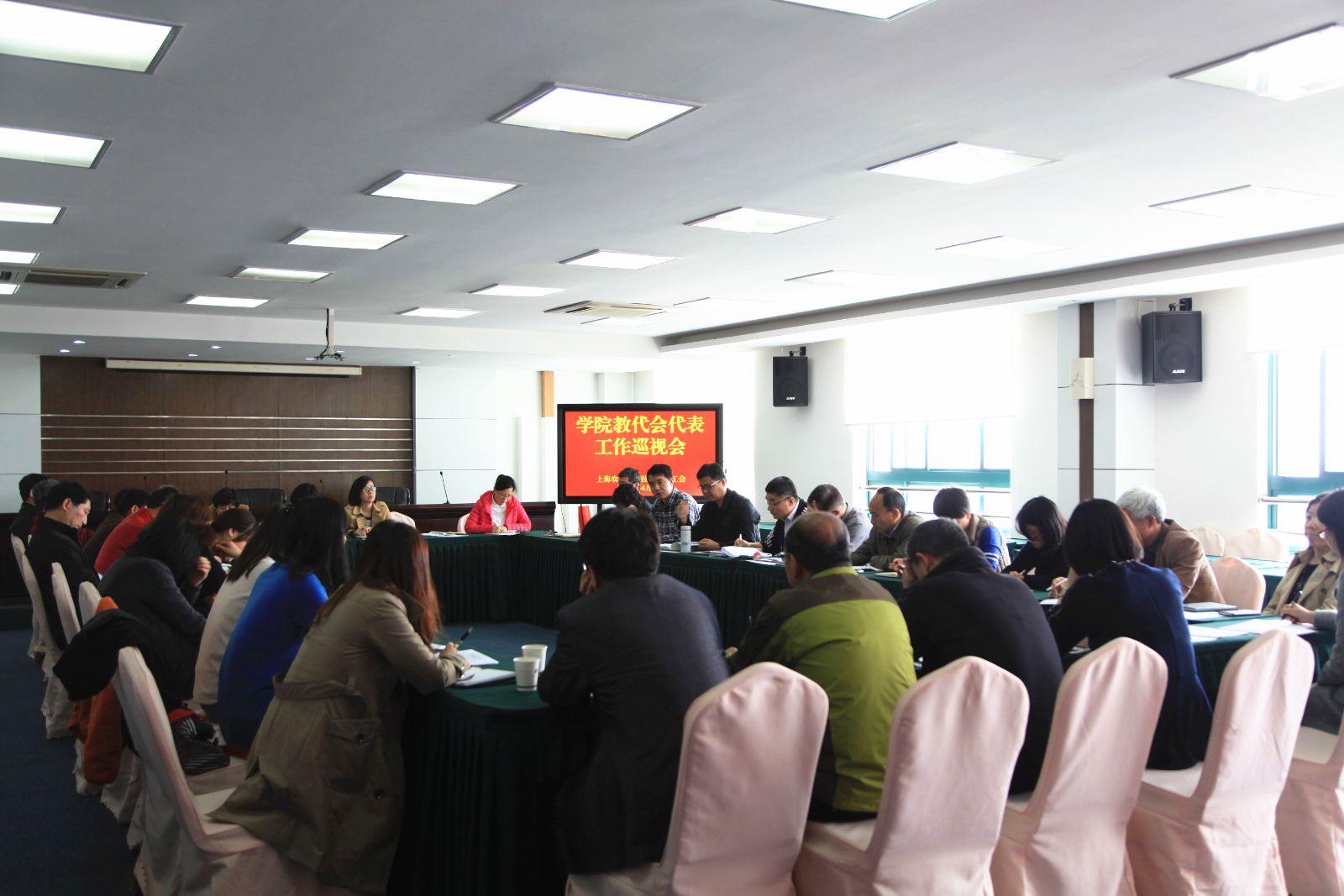 2016年4月8日上午学院工会按照《上海市职工代表大会条例》《上海市高等学校教职工代表大会实施意见》和学院三届三次教代会决议,在综合楼1001会议室组织召开了首次教代会代表工作巡视会。本次教代会代表工作巡视由教代会各代表组正副组长、部分教代会代表参加,工作巡视会邀请院长魏华、副院长仲肇森、市农校副校长王军亮以及学院财务处、人事处等职能部门负责人参加。
