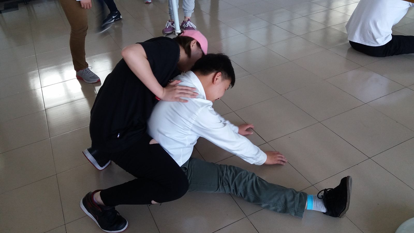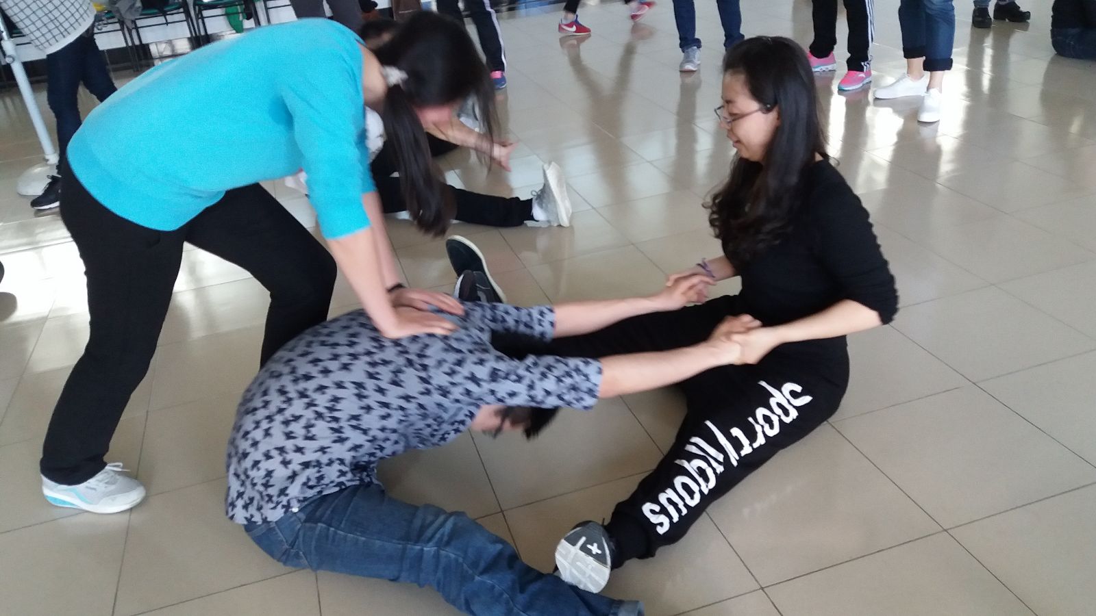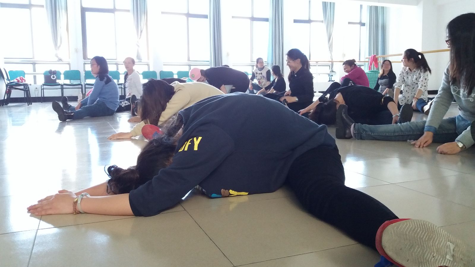 一个小时的热身加爵士舞,大家都酣畅淋漓,大呼过瘾。尤其是热身准备,大大缓解了教师们紧绷的神经和僵硬的身体。常年从事教学工作,大家都或多或少的患有肩颈等毛病,热身后,出个汗,配合音乐强有力的节奏,大家很开心。