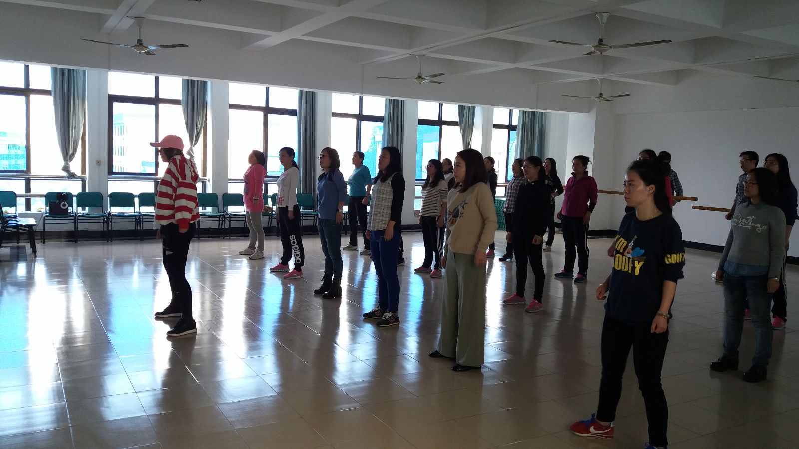 2016年4月14日下午四点,悦耳的铃声响过之后,第一教学楼的五楼舞蹈教室汇聚了三十多名教职工,他们都参加了学院工会牵头组建的教工舞蹈社,舞蹈社还吸引了多名男老师参加。