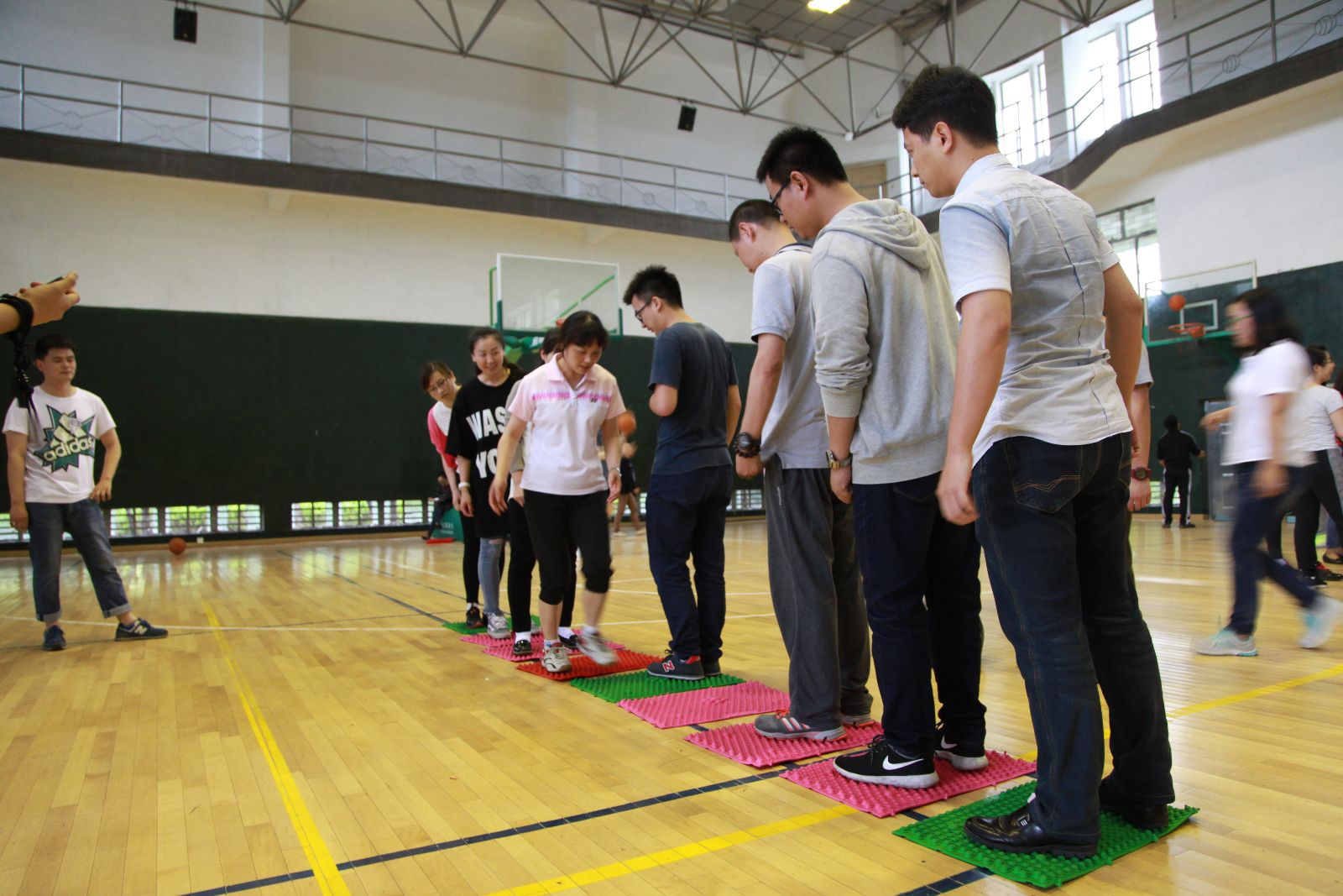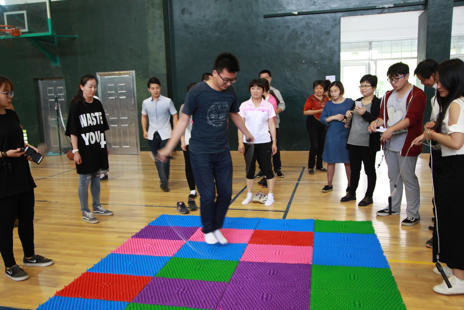 学院12个工会小组参加了比赛,每组选手共有8人。虽然当天气温比较闷热,但汗流浃背的老师们依然全身心投入到竞赛活动中。活动共三个项目,每个项目都要求小组协同合作完成,以最终的总用时作为排名依据。首先开始的是要在指压板上完成200个跳绳任务,完成后进行的是定点投篮,每人站在不同的点投进一个篮板,最后进行“阻塞交通”拓展活动。这些活动让广大教职工充分融入到整个团体之中,活动中处处体现出很强的团队合作意识。经过各小组通力合作的完美配合后,比赛在一片欢声笑语中结束。最终,基础部以绝对实力再一次夺魁。