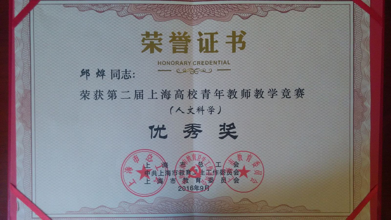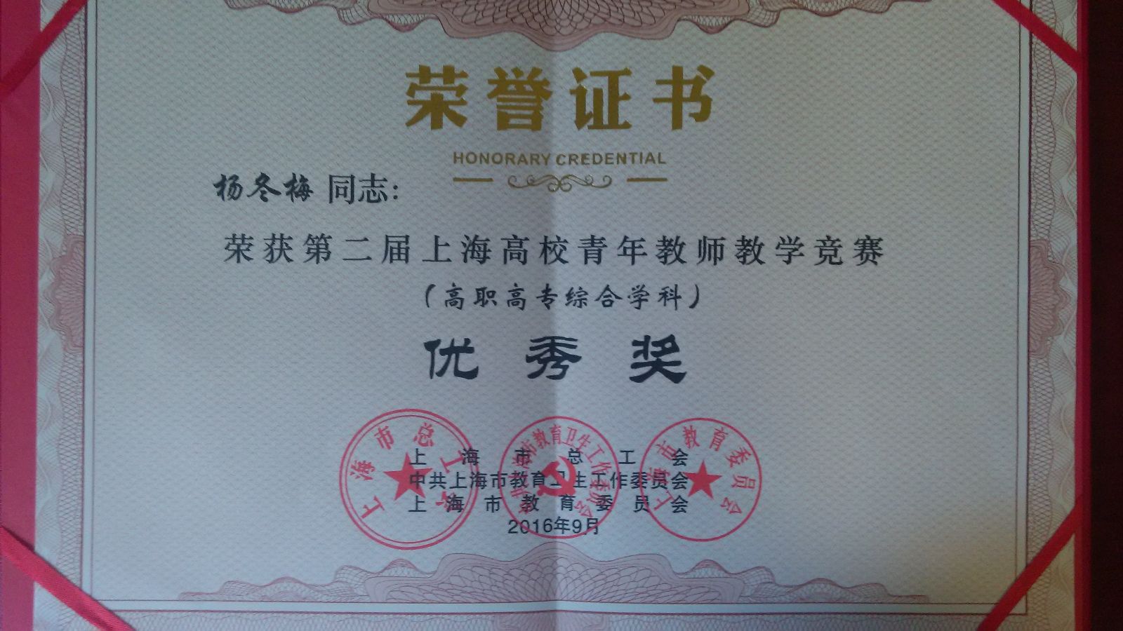 9月7日下午,“青春在讲台—第二届上海高校青年教师教学竞赛总结大会”在上海师范大学霞棐剧院举行。上海市总工会、市教卫工作党委、市教委、市教育发展基金会、市教育工会等领导出席总结大会。代表我院参加第二届上海高校青年教师教学竞赛的基础部邱烨老师和农经系杨冬梅老师分别获得了人文科学组和高职高专组竞赛优秀奖。