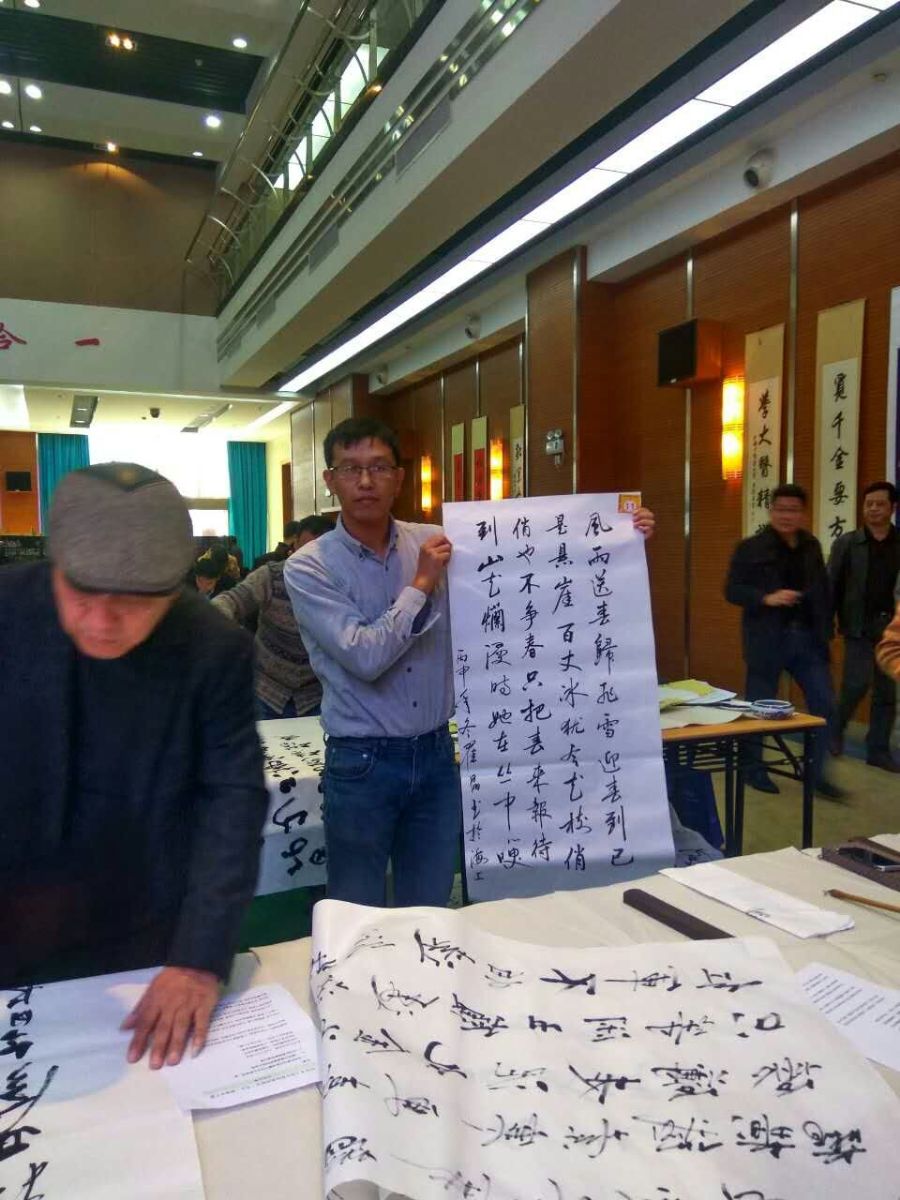 农生系的卢洪秀老师在比赛报名时选择了毛笔字和钢笔字,但是因为比赛是同时进行的,因此最终决定参加钢笔字比赛。在比赛名次只分配65%的比例下,最终也得到了优胜奖的好成绩。赛后,他感慨道:“到了现场才知道,高手真是太多了!这个交流的机会真是太好了!”