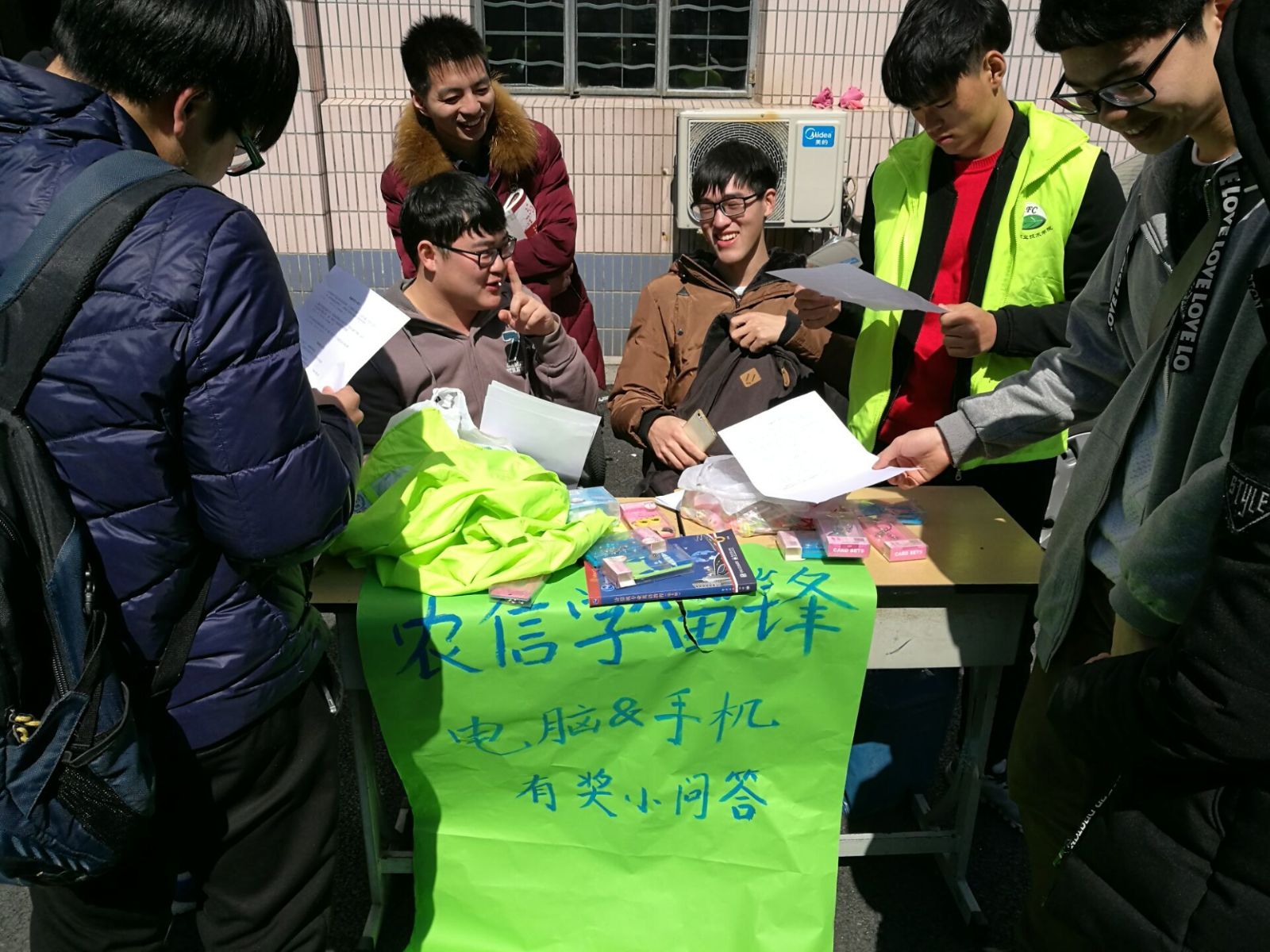 3月6日,院青协在学生事务楼广场开展了签名倡议、DIY雷锋帽、旧教科书换盆栽、雷锋精神宣传、茶道展示、空瓶换盆栽、计算机知识小科普等服务项目。活动现场春意盎然,激烈又不乏趣味,让同学们在参与活动过程中进一步感悟雷锋精神。