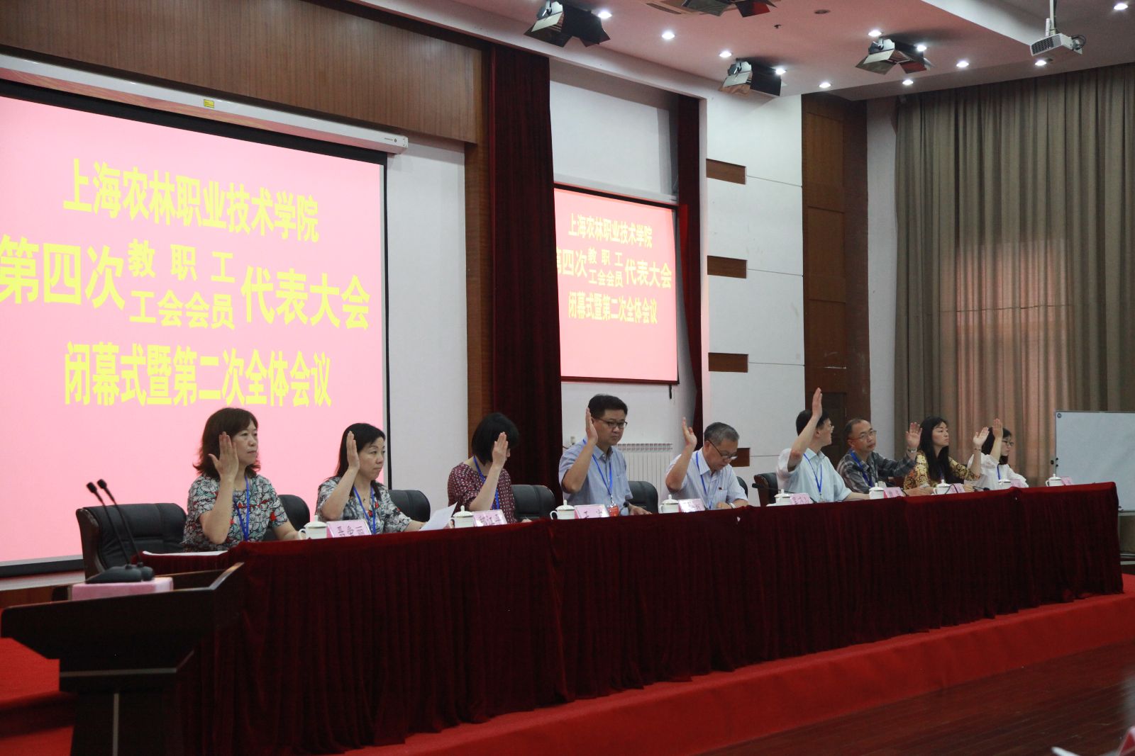 6月23日下午,上海农林职业技术学院第四次教职工暨工会会员代表大会在学院综合楼205报告厅顺利闭幕。学院党委书记吴乃山、院长魏华等学院领导以及61名双代会正式代表、19名列席代表出席大会。