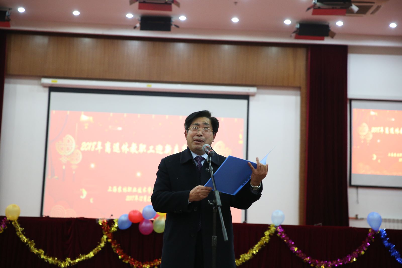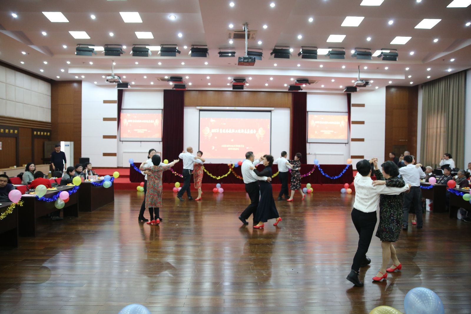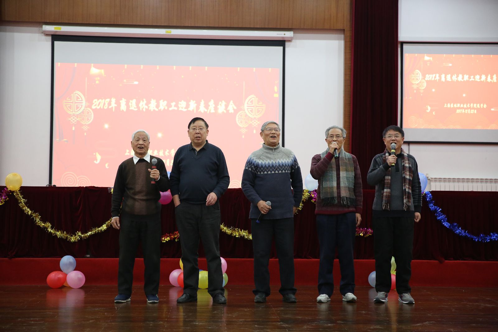 沪剧、越剧、男声小组唱、女声独唱、韵律操、诗朗诵、华尔兹……离退休老师们用丰富多彩的节目喜迎新春的到来,欢乐的笑容、舞动的身姿、美妙的歌声、动人的旋律,舞台上载歌载舞,舞台下交流心得,共话未来。