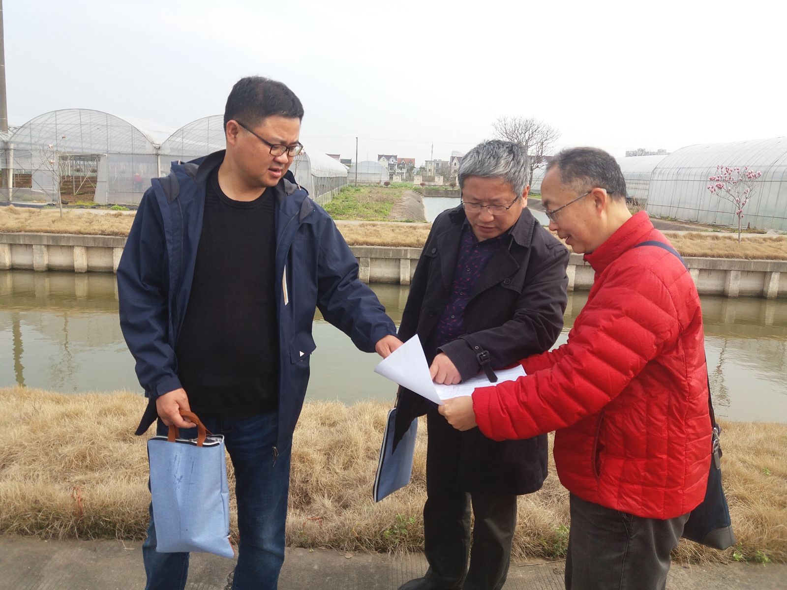 考察队伍从基地的西南角进入,王军亮和吴政春两位老师针对具体的地块有针对性的进行了细致的讲解,代表们认真听,仔细询问,一路缓慢穿行在基地的每个角落,尤其在各系项目地块上,代表们边听,边憧憬这建成后的美丽场景。