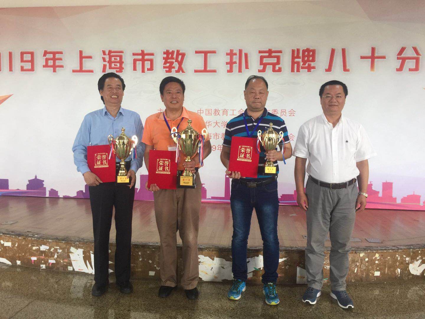 6月2日,上海市教工扑克牌八十分比赛在东华大学隆重举行,上海市教育工会副主席吉启华、东华大学党委副书记、工会主席刘淑慧等领导参加开幕式。由郁金观、郁海根、彭喜欢和成建平老师组成的学院代表队在领队高功辉主席的带领下参加了上海市教工扑克牌八十分比赛。