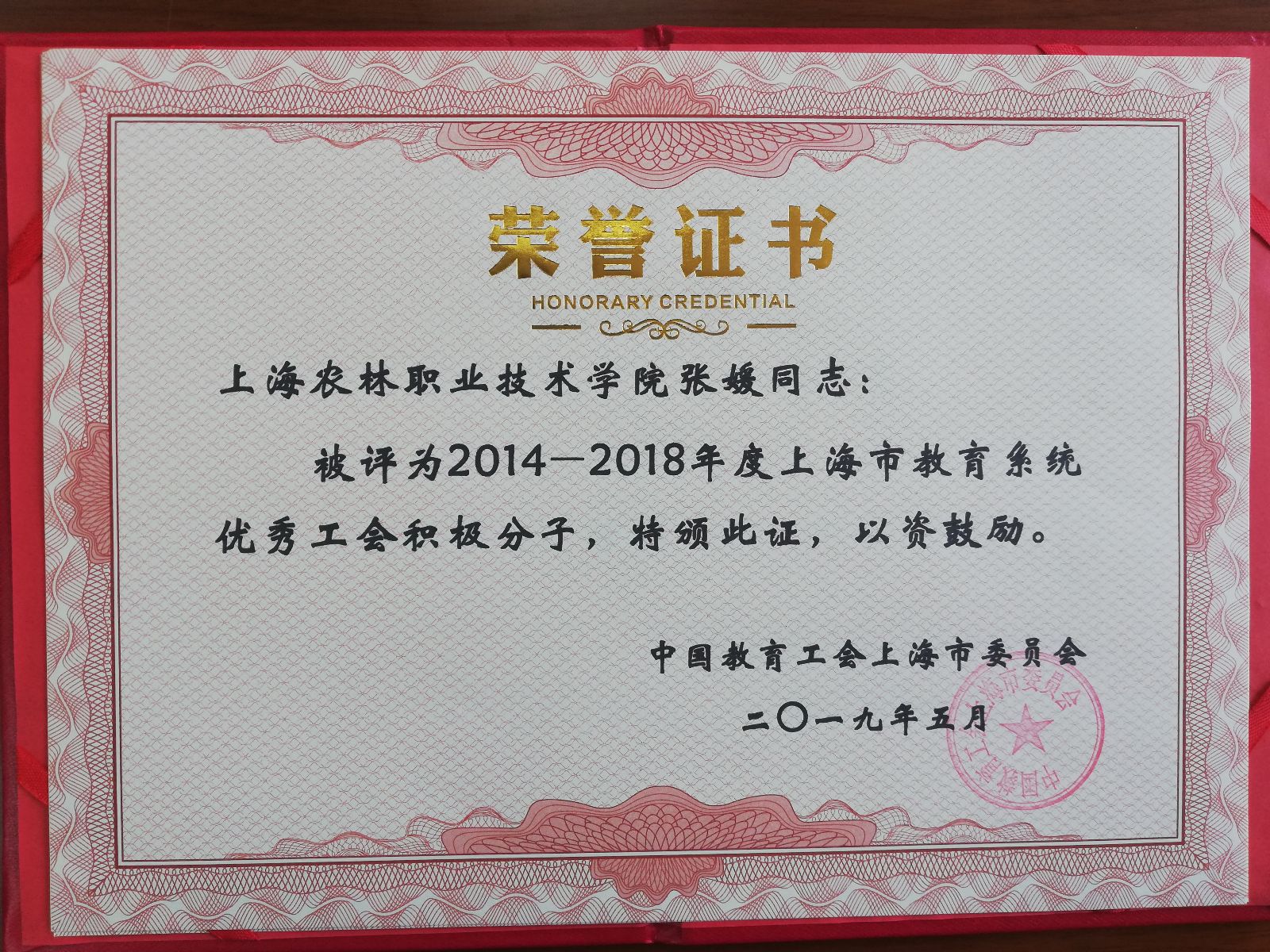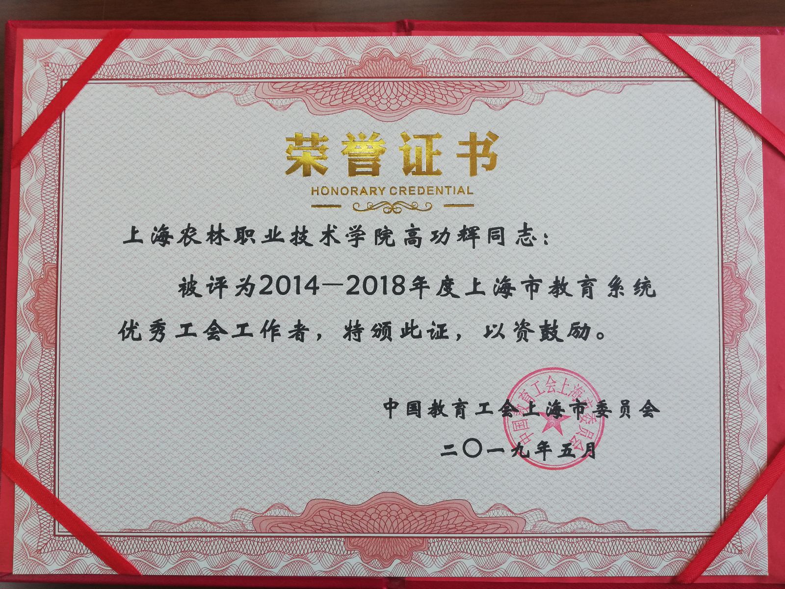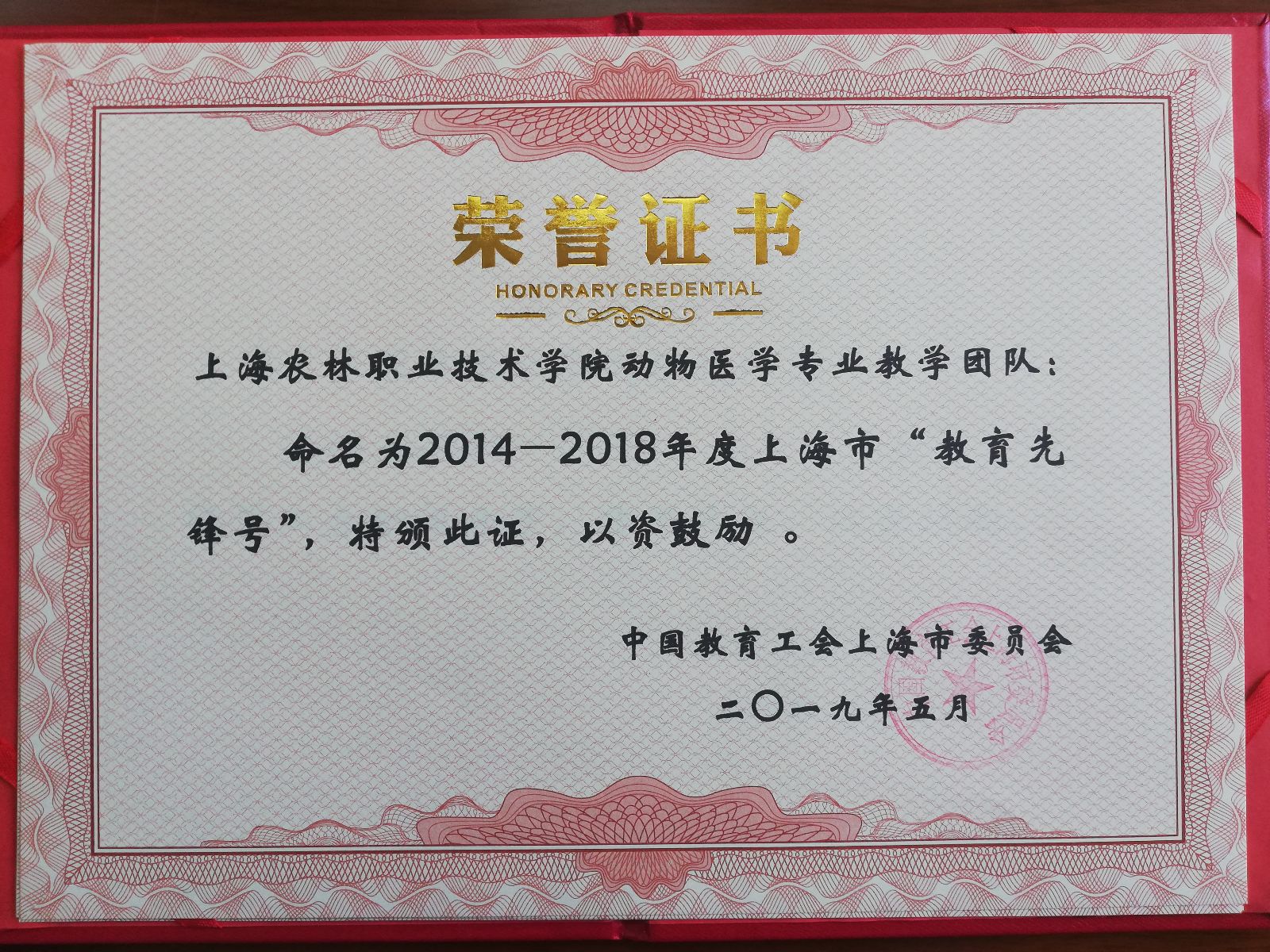 5月31日下午,以“立德树人 砥砺前行”为主题的上海市教育系统先进表彰会在上海科技大学隆重举行。学院动物医学专业教学团队被授予2014-2018年度上海市“教育先锋号”、学院工会主席高功辉同志被授予2014-2018年度上海市教育系统优秀工会工作者、学院工会张媛同志被授予2014-2018年度上海市教育系统优秀工会积极分子。