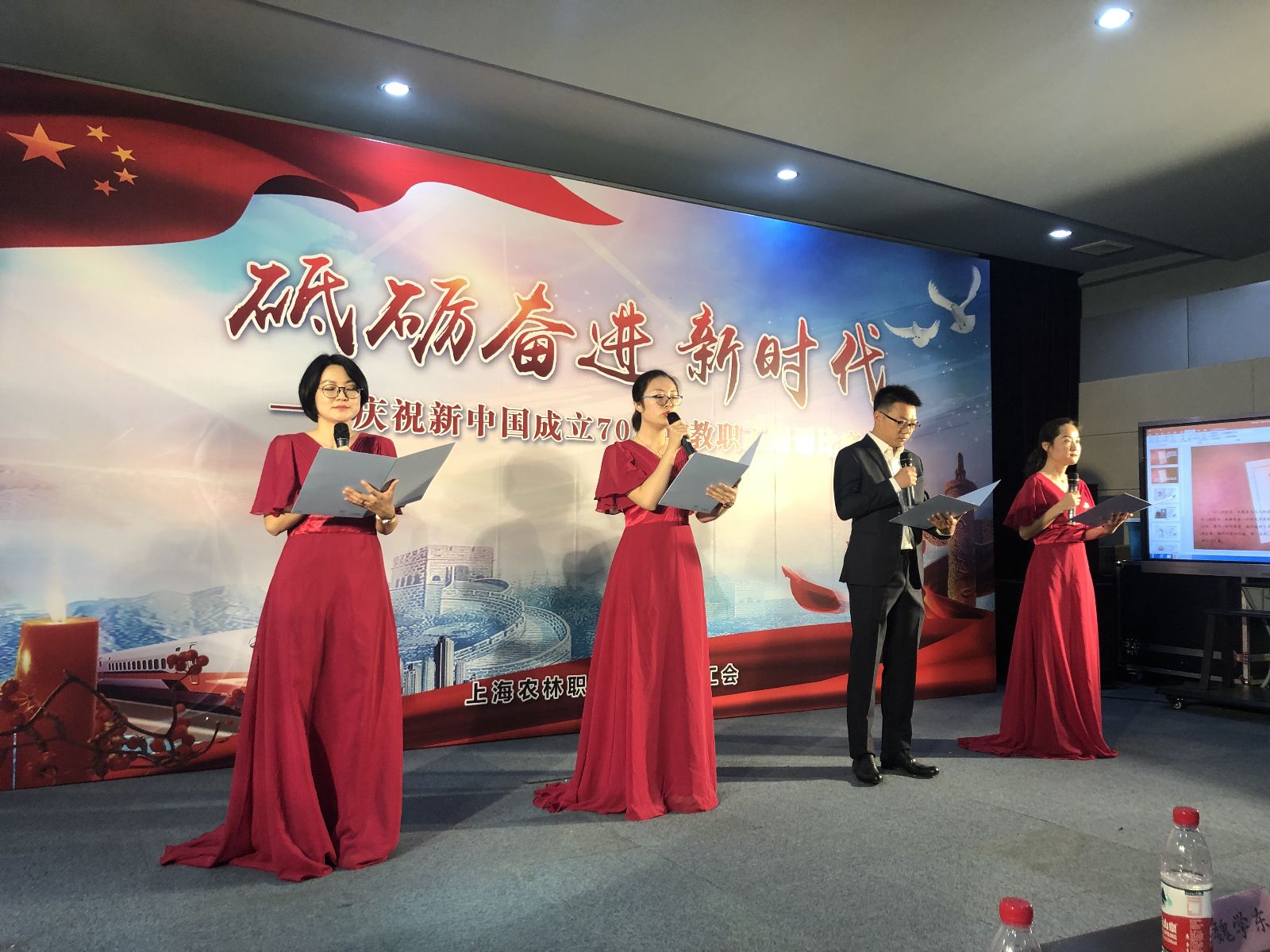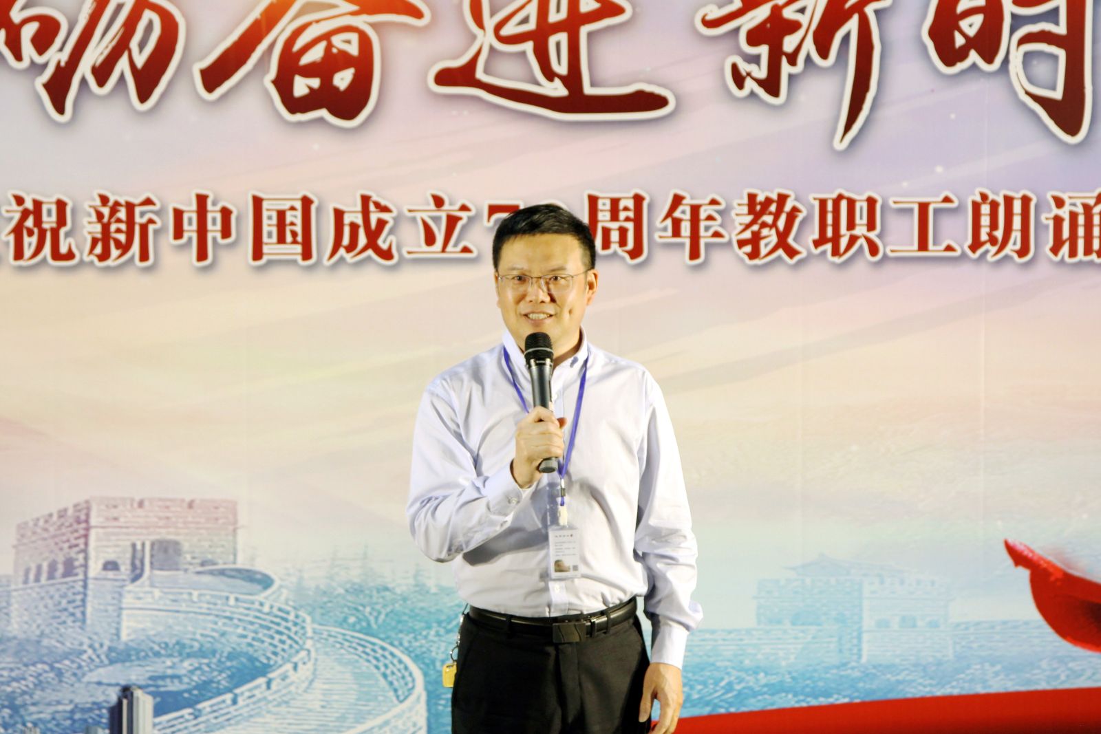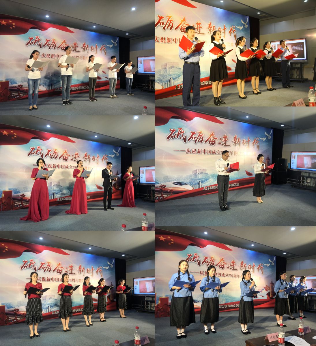 为迎接中华人民共和国成立70周年,讴歌新中国成立70年所取得的巨大成就,进一步激发学院广大教职员工的爱国之情、报国之志和创新创造活力,5月31日,学院工会在学院综合楼303数字资源放映厅举办“砥砺奋进新时代”庆祝新中国成立70周年学院教职工朗诵比赛。朗诵比赛由学院党委副书记俞锦禄、宣传处处长樊清誉、离退休第一党支部书记魏学东、离退休第二党支部书记杨绵芳、团委书记胡慧春担任评委。党委书记蔡红出席活动并致辞。