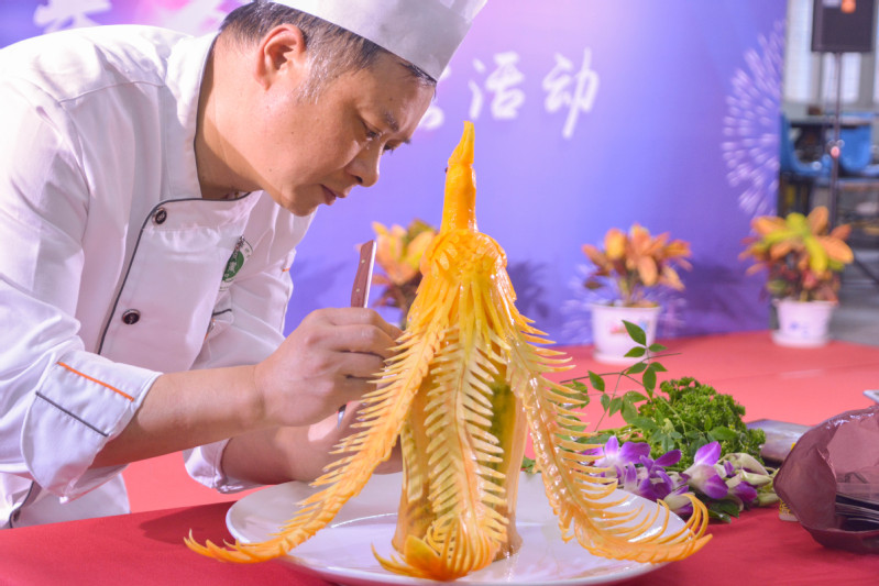 此次比赛共有37名选手参赛,分别来自上海尧发餐饮管理有限公司、上海雷汇柏祺餐饮管理有限公司、白驼清真餐饮管理有限公司和学院自办食堂。今天的活动不仅有美食品尝,更有刀工和雕刻技艺的现场展示。