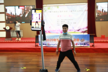 开幕式后,4位老师自愿上台示范“云”动会的比赛项目,得到了在场老师的热烈掌声。在这个疫情防控特殊时期,居家防疫不忘体育锻炼,预祝学校首届“云”运动会圆满成功。
