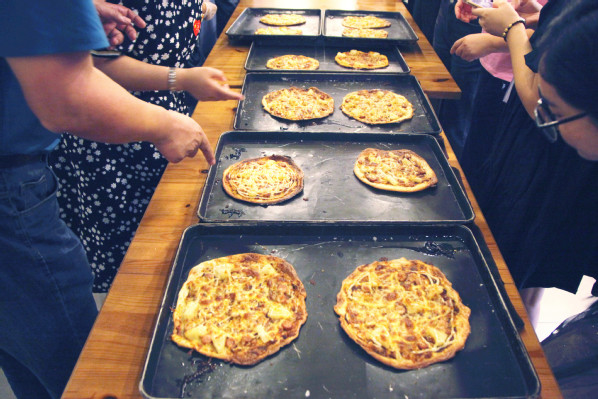 等待披萨出炉的过程中,新进青年教师们围坐一起,交流披萨制作感受,现场气氛其乐融融。工会主席高功辉还对新成立的青年教师联谊会做了简单介绍,希望青年教师积极参与青年教师联谊会的活动。