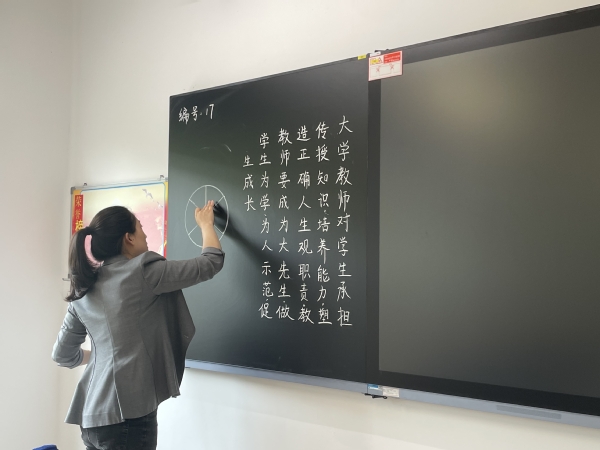 为深入开展学习贯彻习近平新时代中国特色社会主义思想主题教育,强化青年教师基本功,提升青年教师教学能力,激励广大教职工奋进新征程、建功新时代,近日,青年教师教学基本功(板书)大赛在第一、第二教学楼举行,来自各系的19位青年教师参加比赛。本次比赛由工会、教务处联合主办。